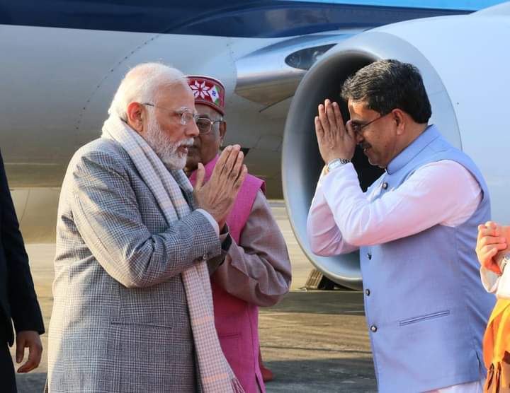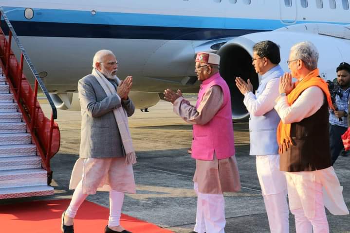 Hon’ble Governor Satyadev Narayan Arya welcomed and received Hon’ble Prime Minister Narendra Modi along with Hon’ble Chief Minister Dr. Manik Saha, Hon’ble Deputy Chief Minister Jishnu Dev Varma at Maharaja Bir Bikram (MBB) International Airport, Agartala on Sunday (18th December, 2022).