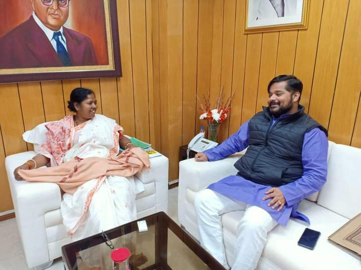 Hon’ble Information & Cultural Affairs, Sports, PWD (DWS) minister Sushanta Chowdhury on Friday (10th December, 2021) met with Hon’ble MP and Union Social Justice and Empowerment minister Pratima Bhoumik at Shastri Bhawan, New Delhi.