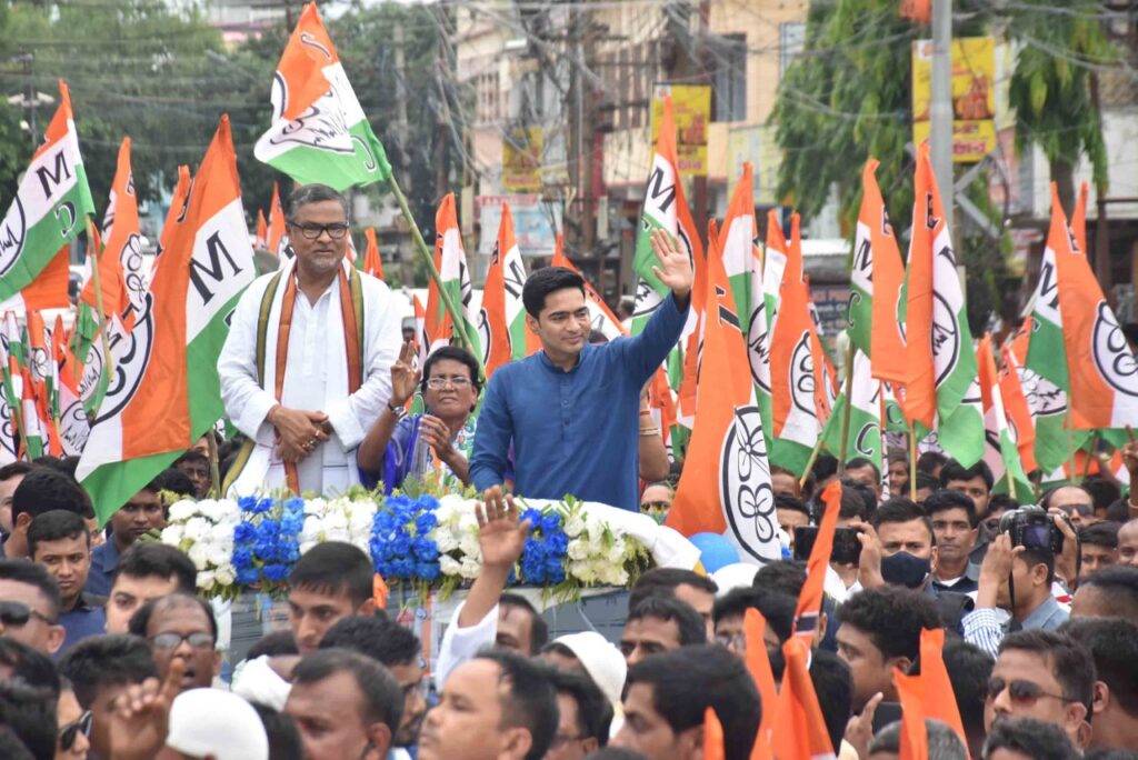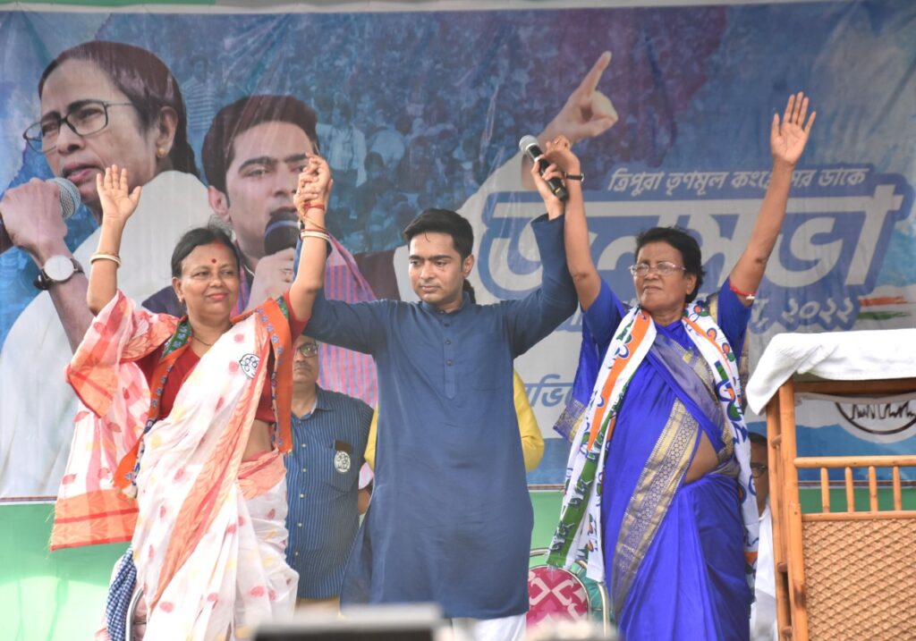 Hon’ble MP And National General Secretary of All India Trinamool Congress Abhishek Banerjee road show in support of AITC Tripura Candidates in the By-Election of Panna Deb Agartala-6 & Sanhita Bhattacharya (Banerjee) Town Bordowali-8 Assembly Constituency on Tuesday (14th June, 2022). Hon’ble MP and Member of All India Trinamool Congress Sushmita Dev, Tripura Pradesh Trinamool Congress State In-charge Rajib Banerjee, Tripura Pradesh Trinamool Congress President Subal Bhowmik and other TMC leaders were present at the road show.