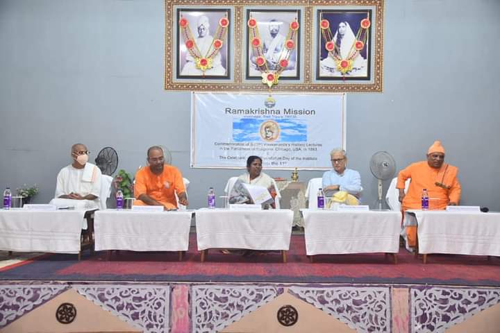 Hon’ble MP and Union Social Justice and Empowerment Minister Pratima Bhoumik and Hon’ble Deputy Chief Minister Jishnu Dev Varma on today (11th September, 2021) attended a programme organized by Ramakrishna Mission Vidyalaya at Viveknagar to mark the 125th Anniversary of Swami Vivekananda’s Historic Chicago Speech. Distributed prizes among the students on this programme on the occasion of 31st Foundation Day of the School.