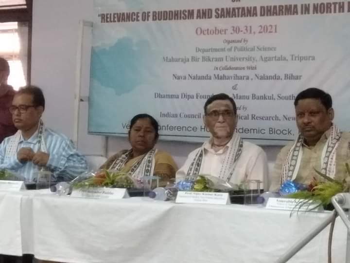 Hon’ble MP and Union Social Justice and Empowerment minister Pratima Bhoumik on today (30th October,2021) attended a National Seminar on ” Relevance of Buddhism and Sanatana Dharma in North East India” at MBB University, Agartala.