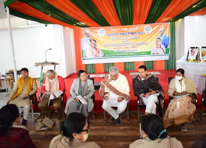 “Attended the joint meeting of State Office Bearers with ‘Election Management Committee’ headed by Shri Bhupender Yadav BJP  ji, Union Minister & Election Prabhari of BJP Manipur”, Hon’ble MP And Union Minister Pratima Bhoumik tweeted.