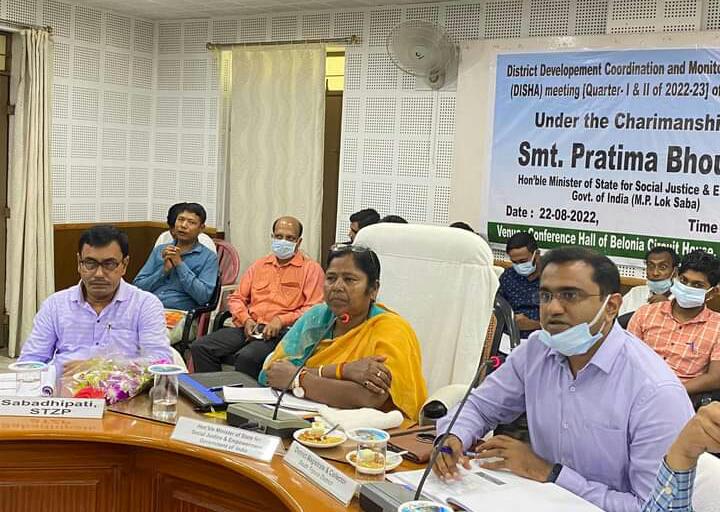 Hon’ble MP and Union Social Justice and Empowerment Minister Pratima Bhoumik chaired the South Tripura District DISHA Committee meeting at Belonia along with DM South Tripura, other officials and dignitaries on Monday (22nd August, 2022).