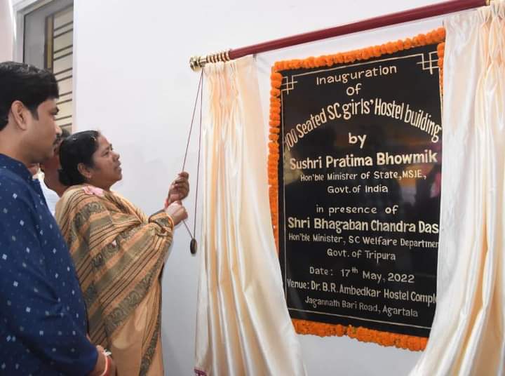 Hon’ble MP and Union Social Justice and Empowerment Minister Pratima Bhoumik has inaugurated the newly constructed hundred seated SC Girls’ Hostel Building at Dr. B.R. Ambedkar Hostel Complex, Jagannath Bari Road in Agartala on Tuesday (17th May, 2022). Hon’ble Mayor of Agartala Municipal Corporation (AMC) Dipak Majumder and other dignitaries were present at the inauguration ceremony.