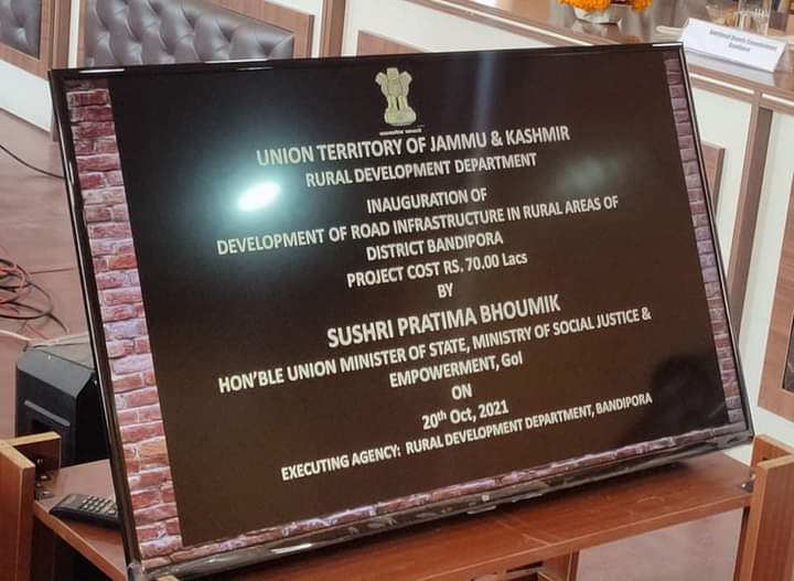 Hon’ble MP and Union Social Justice and Empowerment Minister Pratima Bhoumik on today (20th October, 2021) visited in Bandipora, Kashmir and inaugurates various development projects. Hon’ble MP And Union Minister Pratima Bhoumik e-inaugurated development of road, play fields and irrigation and water conservation facilities in rural areas of Bandipora District.