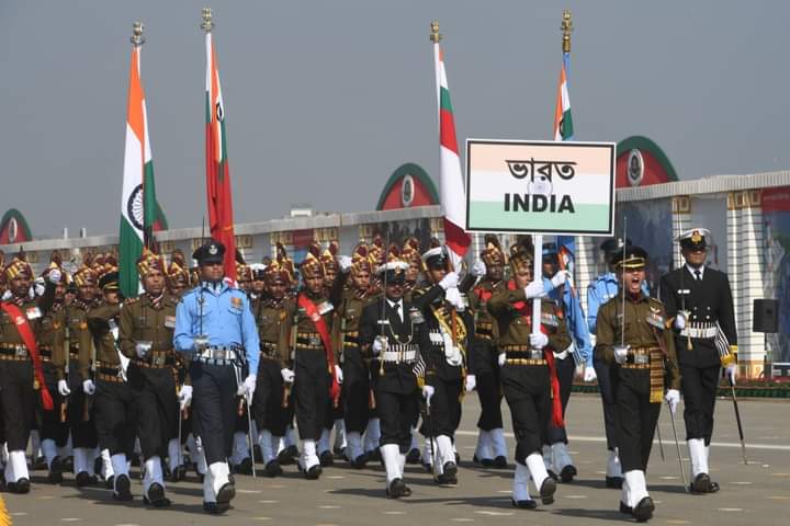 “President Ram Nath Kovind attends Victory Day Parade at National Parade Ground in Dhaka. A 122 member tri-services contingent from Indian Armed Forces also participated in the Victory Day celebrations” Hon’ble President Ram Nath Kovind tweeted.