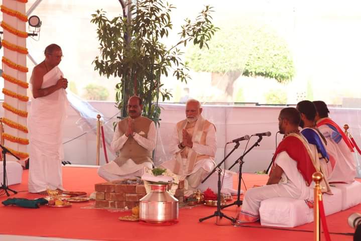 Hon’ble Prime Minister Narendra Modi inaugurated the New Parliament Building at New Delhi on Sunday (28th May, 2023). The ceremony began with traditional prayers and Vedic rituals. ‘Sengol’, a historic sceptre, was installed next to the Speaker’s chair by Prime Minister Modi after performing the necessary rituals. Hon’ble Lok Sabha Speaker Om Birla was also present with along with Prime Minister.