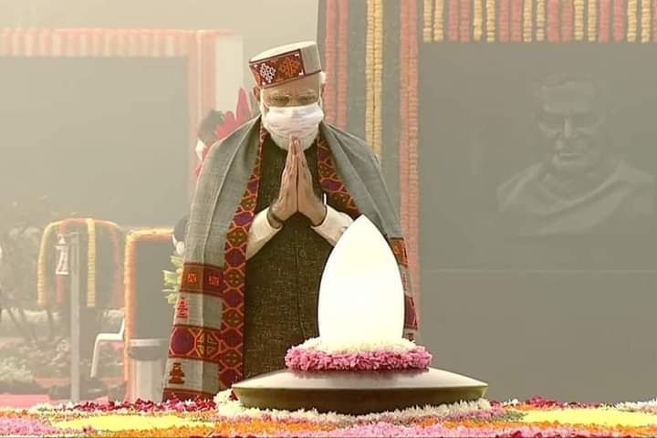 Hon’ble Prime Minister Narendra Modi paid tributes to Atal Bihari Vajpayee, former Prime Minister of India on his birth anniversary at Sadaiv Atal, New Delhi on today (25th December, 2021).