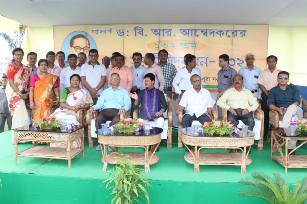 Hon’ble SC Welfare, Animal Resource Development and Labour minister Bhagaban Das paid tributes to Dr. BR Ambedkar on his Birth Anniversary at Ujjayanta Palace (Tripura State Museum), Agartala on Thursday (14th April, 2022). MLA Kalyani Roy, MLA Dr. Dilip Kumar Das and other dignitaries were present.