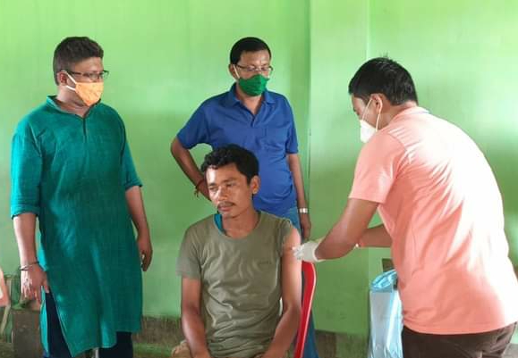 Hon’ble Youth Affairs and Sports, Food, Civil Supplies and Consumer affairs Minister Manoj Kanti Deb visited Covid Vaccination Center at Sayamrichara, Dhalai District on Today (7th August, 2021).