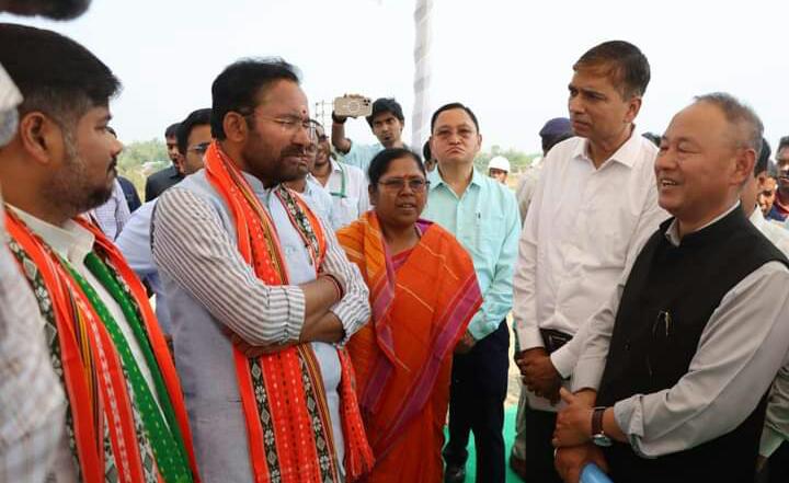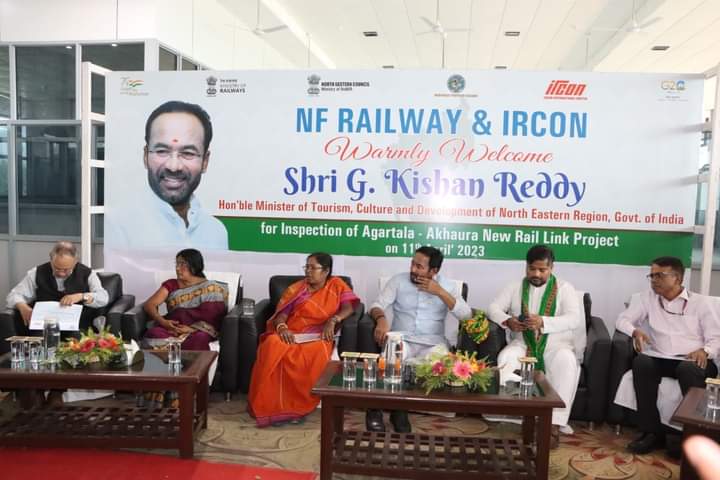 Hon’ble Union Minister of Tourism, Culture And Development of North Eastern Region of India (DONER) G. Kishan Reddy visit and inspect the Agartala- Akhaura Rail Link Project Site at Nishchintapur, Agartala on Tuesday (11th April, 2023). Hon’ble MP and Union Social Justice and Empowerment Minister Pratima Bhoumik, Hon’ble Food, Civil Supplies & Consumer Affairs, Transport and Tourism minister Sushanta Chowdhury, MLA Mina Rani Sarkar and officials were present during the minister visit.
