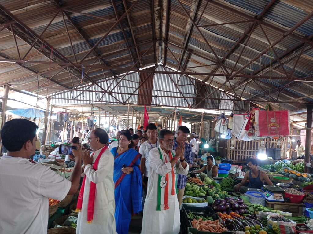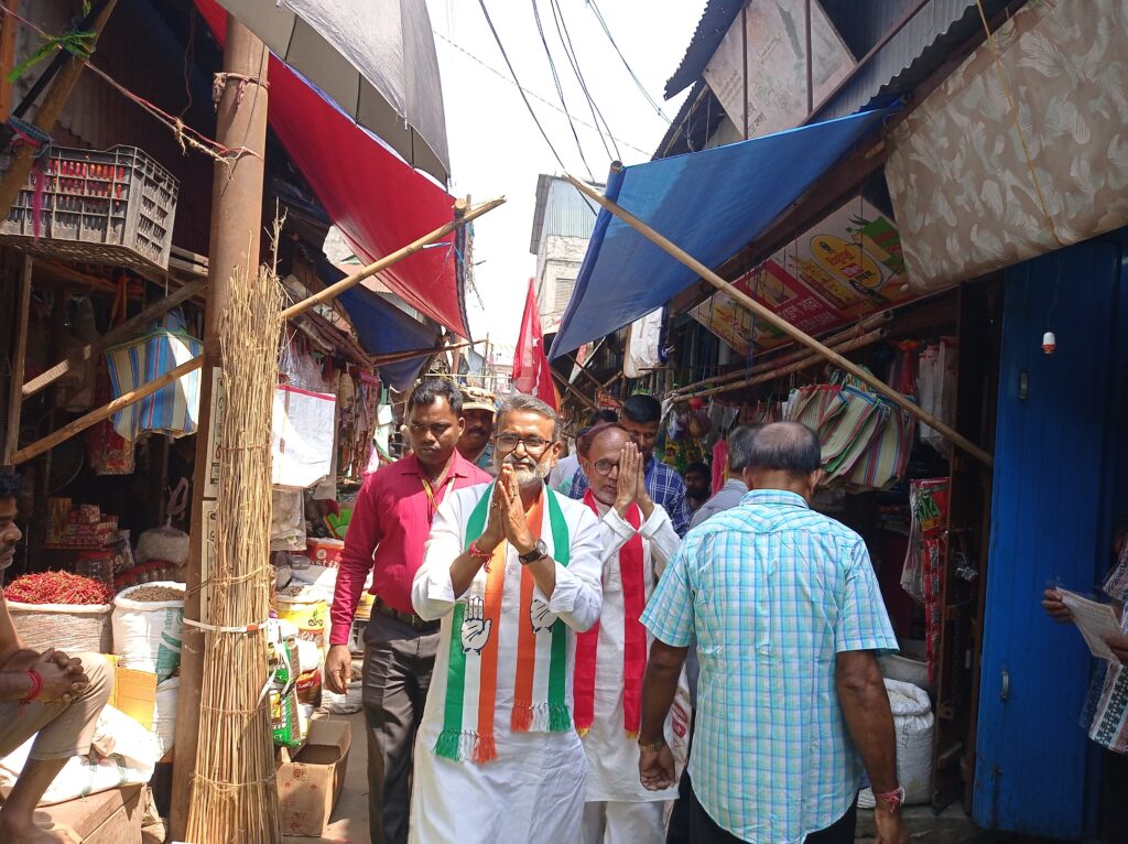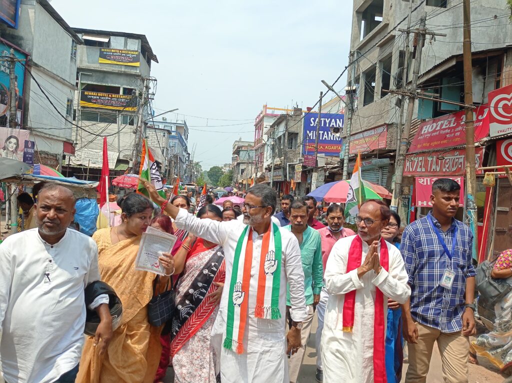 Agartala, 9th of April, 2024 : With the initiative of Congress and CPI(M) committee campaign has been conducted at Batala Bazar in support of TPCC President & I.N.D.I.A. bloc-backed candidate of Tripura West PC and By-elections of Ramnagar-7 AC on Tuesday (9th April, 2024). Indian National Developmental Inclusive Alliance (I.N.D.I.A.) bloc-backed candidate of Tripura West Parliamentary Constituency Ashish Kumar Saha and candidate of Ramnagar-7 Assembly Constituency Ratan Das participated in the campaigning for the forthcoming Lok Sabha and By-election in Tripura.