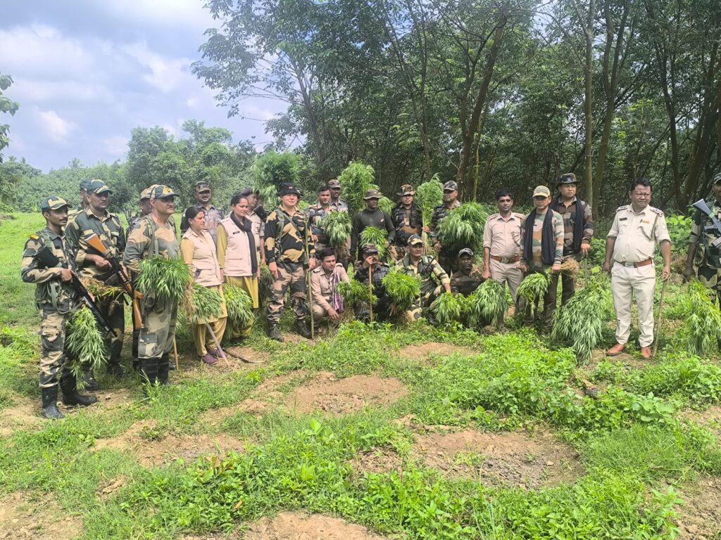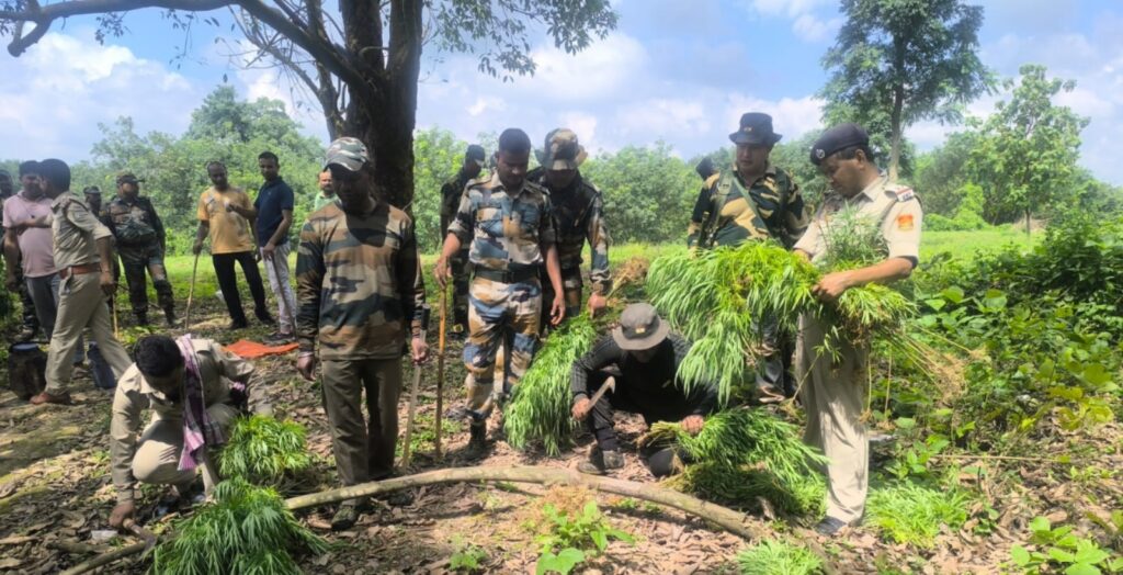Sepahijala, Tripura, 1st of September, 2025 : Sepahijala District Police, in joint operations with BSF, TSR battalions, Forest officials, and other agencies, carried out a massive crackdown on illicit Cannabis (Ganja) cultivation on 31st August 2025 from early of the morning at various locations of the district.