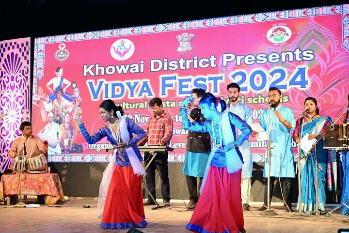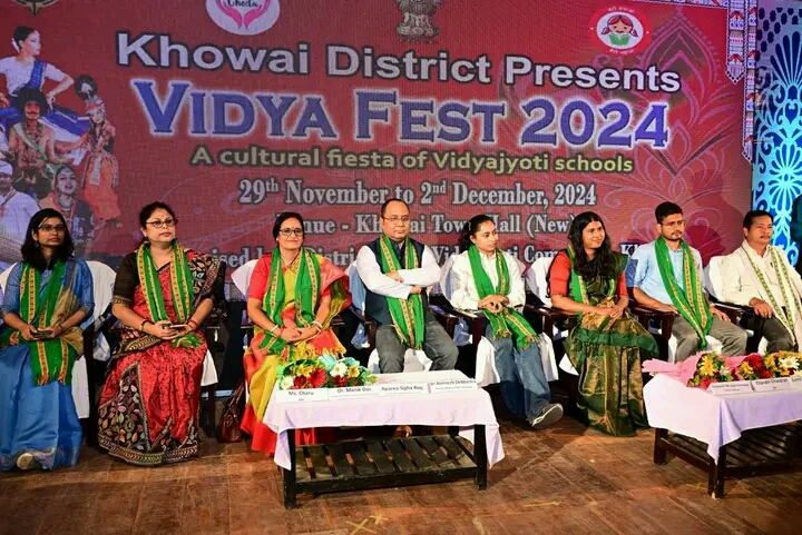 Khowai, Tripura, 29th of November, 2024 : With the initiative of Khowai District Administration Vidya Fest inaugural ceremony has been organized at New Town Hall in Khowai. In the presence of many dignitaries Hon’ble Forest, Science & Technology Minister Animesh Debbarma inaugurated the ceremony by lighting the lamp. For the first time Vidya Fest the inaugural ceremony of 12 Vidyajyoti Schools in Khowai district. This event will be held in Khowai district for four days. A total of 25 events including dance, drama, music, yoga, sports and other programs will be celebrated.