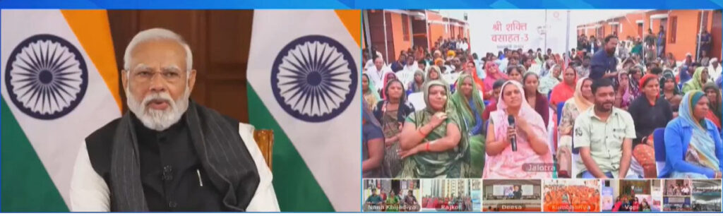 New Delhi 10th of February 2024 : The Prime Minister, Narendra Modi addressed ‘Viksit Bharat Viksit Gujarat’ program via video conferencing today. During the programme, the Prime Minister inaugurated and performed Bhoomi Poojan of more than 1.3 lakh houses across Gujarat built under Pradhan Mantri Awas Yojana (PMAY) and other housing schemes. He also interacted with the beneficiaries of Awas Yojna.