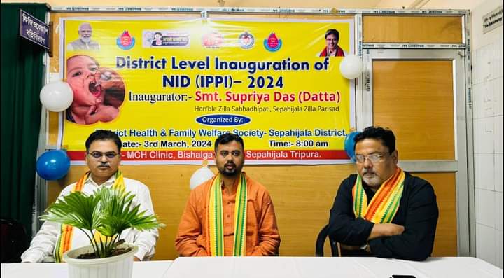 Bishalgarh, 3rd of March 2024 : With the initiative of District Health & Family Welfare Society Sepahijala District has inaugurated District Level NID (IPPI) 2024 at Bishalgarh on Sunday (3rd March, 2024). In the presence of many dignitaries Zilla Sabhadhipati, Sepahijala Zilla Parishad Supriya Das (Datta) has inaugurated District Level NID (IPPI) 2024 today. MLA and State President, Bharatiya Janata Yuva Morcha (BJYM) Sushanta Deb and many others remained present in the programme.