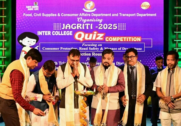 The Jagriti-2025 program has been launched with the aim of road safety, consumer protection and drug-free society. This program is organized by the Food, Public Procurement and Consumer Affairs and Transport Departments in collaboration with the Higher Education Department of the state government. The first phase of the program was organized today with colleges of South Tripura, Gomati and Sepahijala districts. A mega quiz competition was held on the occasion.