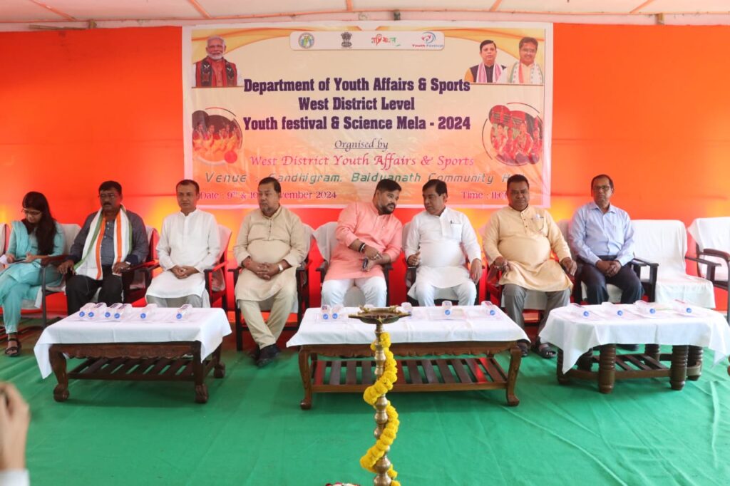 Agartala, Tripura, 9th of November, 2024 : With the initiative of Youth Affairs and Sports Department Government of Tripura West Tripura District Level Youth Festival and Science Fair organized in Baidyanath Majumder Auditorium & Training Center in Gandhigram, Bamutia on Saturday (9th November, 2024). In the presence of many dignitaries Hon’ble Food, Civil Supplies & Consumer Affairs, Transport and Tourism minister Sushanta Chowdhury inaugurated the event by lighting the lamp.