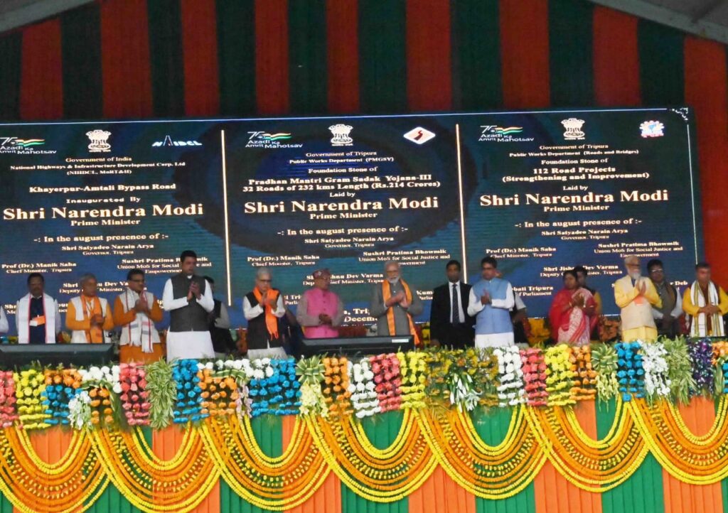 “Tripura is moving towards peace and development. The benefits of the double engine Government that has been established in the State have reached everywhere”, Hon’ble Prime Minister Narendra Modi said this while inaugurating three projects, laying foundation stone of two projects and Griha Pravesh ceremony of over 2 lakh beneficiaries under Pradhan Mantri Awaas Yojana. The hope that the speed of development will increase in the coming days with the joint efforts of all, the Prime Minister said that the Central Government is giving thousands of crores of rupees for the development of Tripura. The State Government is implementing them properly.