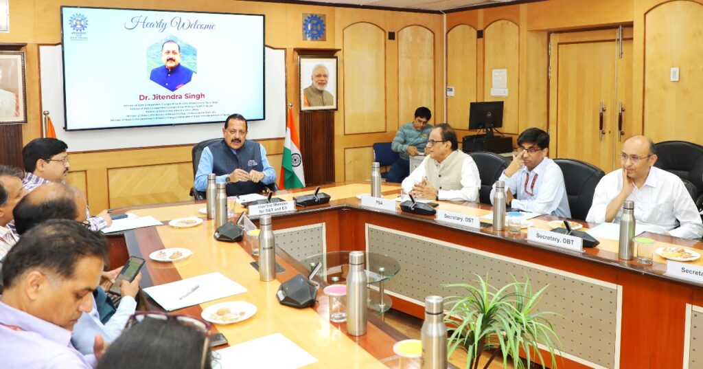 Union Minister took a review meeting having presence of all secretaries in Science and Technology Ministry . Dr. Ajay Kumar Sood, PSA to Government of India along with Prof. Abhay Karandikar, secretary, DST ; Dr. Rajesh Gokhale, Secretary,DBT along with senior scientists of ISRO and CSIR were also present.