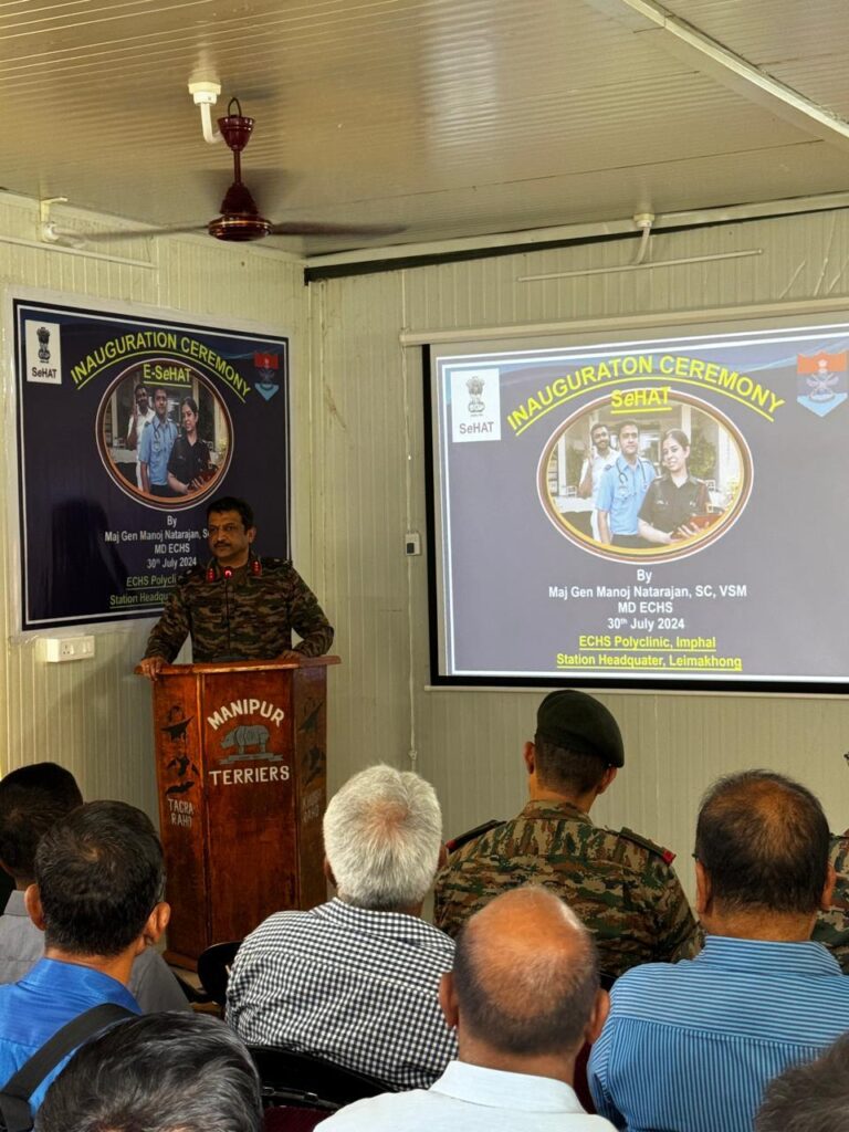 New Delhi, Delhi, 30th of July, 2024 : The Ex-Servicemen Contributory Health Scheme (ECHS) has launched the Electronic Services e-Health Assistance and Tele-consultation (E-SeHAT) module on 30th July 2024. The E-SeHAT Tele-consultancy would enable ECHS beneficiaries in obtaining online Tele-consultation for medical treatment from their homes without visiting the ECHS Polyclinic. The module aims to provide health care services through safe and structured video based clinical consultations. The pilot project has been launched today at 12 ECHS Polyclinics including remote locations of Baramulla, Imphal, Churachandpur, Dimapur and Aizawal. The 12 ECHS Polyclinics tele-consulted remotely located ECHS beneficiary ex-servicemen before its pan India Roll Out planned in November 2024. The inaugural pilot testing was witnessed by Major General Manoj Natarajan, Managing Director, Central Organisation Ex-Servicemen Contributory Health Scheme at Imphal ECHS Polyclinic.