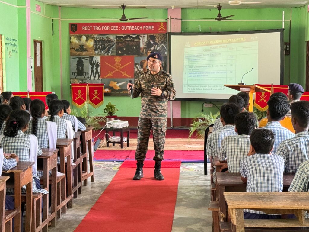 Agartala, 16th of May, 2024 : In continuation with its initiative, Spear Corps of the Indian Army conducted an awareness program ‘Join the Indian Army’ at Nagichara Uccha Vidyalaya in Agartala, West Tripura on 16 May 2024. The program featured motivational talk and interactive sessions, highlighting diverse career paths in the Armed Forces.