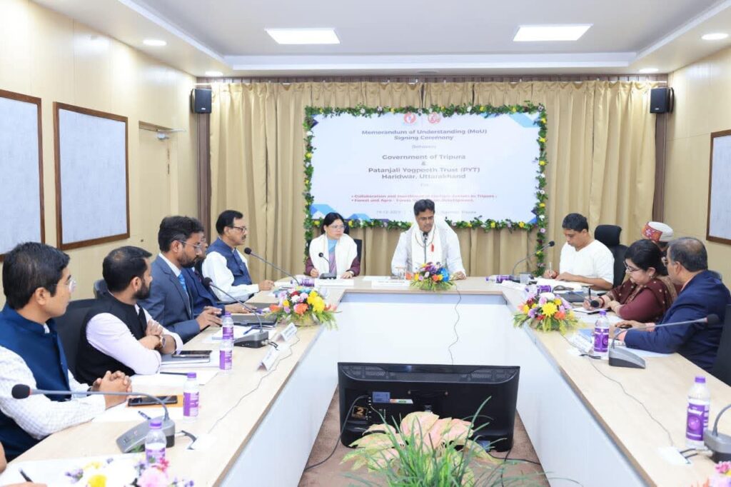 At the MoU signing ceremony, CEO and Managing Director of Patanjali Yogpeeth Trust, Acharya Balkrishna, expressed interest in supporting the overall development of Tripura’s potential sectors. He conveyed his willingness to work in areas such as agriculture, religious tourism, information technology, and skill development training. He also stated that Patanjali Yogpeeth Trust would extend full cooperation to develop Tripura as a model state in the coming days.