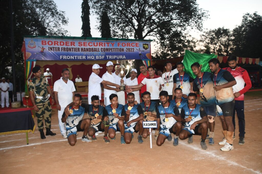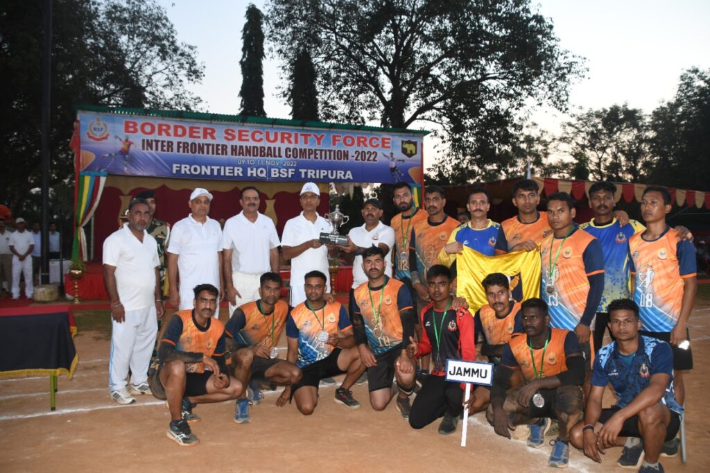 Border Security Force, Tripura organized Inter Frontier Handball Competition: 2022-23 at Salbagan, Agartala. Tournament from 09th Nov 2022 to 11th Nov 2022. 176 players from 11 Frontier teams participated in the event. Teams of BSF Frontiers both from Eastern & Western border, right from Kashmir to Tripura, actively participated in the tournament and shown true sportsmanship during the competition.