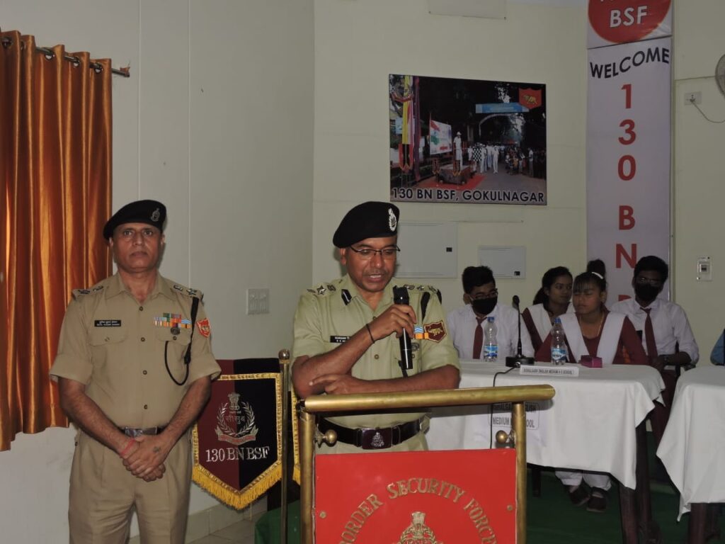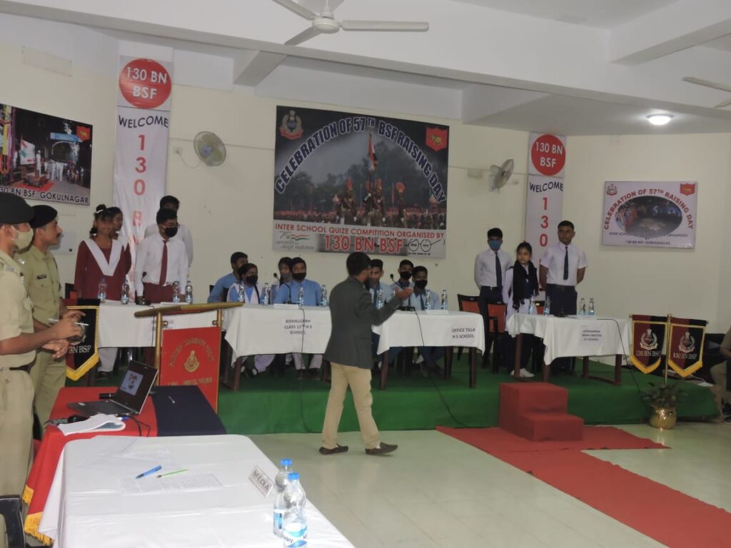 130 BN BSF organized Inter school quiz competition at Gokulnagar campus Sipahijala Tripura on 30th November, 2021. Raj Narayan Mishra Commandant 200 BN BSF inaugurated the inter school quiz competition in which children of four renowned school of locality participated. Children from Bishalgarh English medium school HS School, Bishalgarh Class 12 HS School, Office Tilla HS School and Vivekanand Shishu Niketan H.S. School vied for wines up trophy in the quiz. Vivekanand School was declared Winners and Bishalgarh English medium school HS School as runners up. The questions of the quiz were asked regarding BSF, 1971 war G K and modern history. The event was attended by Parents, teachers BSF officers, SOS and Jawans. This program was aimed to create awareness about BSF in public and to commemorate the golden jubilee year of liberation of Bangladesh.