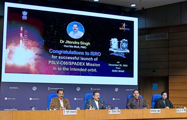 New Delhi, Delhi, 31st Of December 2024 : ISRO’s Space Docking Experiment (SPADEX) marks a groundbreaking achievement, placing India on par with global leaders in space docking technology. Union Minister Dr. Jitendra Singh hailed the mission as a milestone while addressing the media today in New Delhi following the successful launch of PSLV-C60 from Sriharikota on December 30.