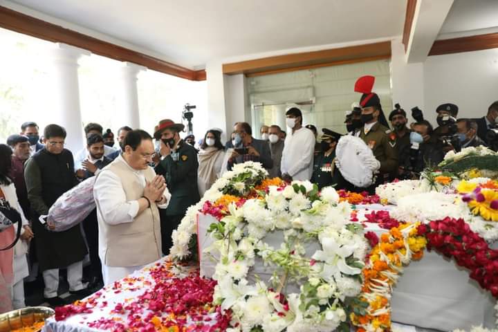 President of the Bharatiya Janata Party (BJP) Jagat Prakash Nadda on today (10th December, 2021) paid last respects to Chief of Defence Staff General Bipin Rawat and his wife Madhulika Rawat.