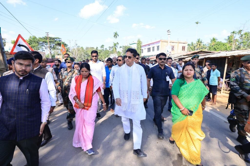 After visiting Shantirbazar, Dr. Saha said, “I have come here with several leaders and officials. On October 23, the Tripura Civil Society called for a strike, and an unfortunate incident occurred at Shantirbazar in Dhalai district. It was a conspiracy. Earlier, similar incidents had taken place at Gandatwisa and other parts as well. Common people never want such things. When the incident occurred, I monitored the situation throughout the night and sent police officials to the spot. On October 23, Section 163 BNS was imposed, and it was withdrawn on October 31. In Tripura, Jaati and Janajati must stay together. We must remain cautious. The government will not spare anyone involved in such incidents, whoever they may be.”