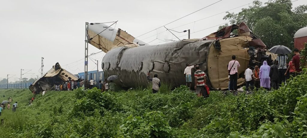 West Bengal, 17th of June, 2024 : The accident occurred when a goods train hit a stationary passenger train, the Kanchenjungha Express, in West Bengal on Monday (17th June, 2024) morning. The collision occurred near Rangapani station, approximately seven kilometers from New Jalpaiguri. The Kanchanjunga Express (13174) train was bound for Sealdah from Agartala when the accident occurred at around 9:00am (09.01 hrs). According to sources, 8 people have died and around 25 have been injured in a train crash.