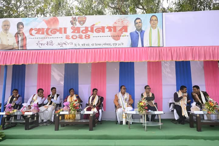 Social activist Shyamal Nath, Convener of the ‘Khelo Dharmanagar’ Management Committee, delivered the welcome speech at the event. Amidst the other distinguished dignitaries there were Hon’ble Speaker of the Legislative Assembly Biswa Bandhu Sen, North Tripura District Magistrate and Collector Debapriya Bardhan, Dharmanagar Municipal Council Chairperson Mitali Rani Das Sen, Municipal Council Vice Chairperson Manju Nath, Social activist Pradip Debbarma, Sajal Debnath, Sub-divisional Magistrate, Dharmanagar and many other dignitaries were remained present in the inaugural ceremony.