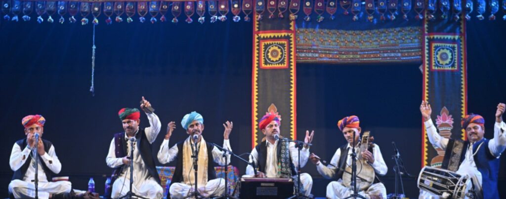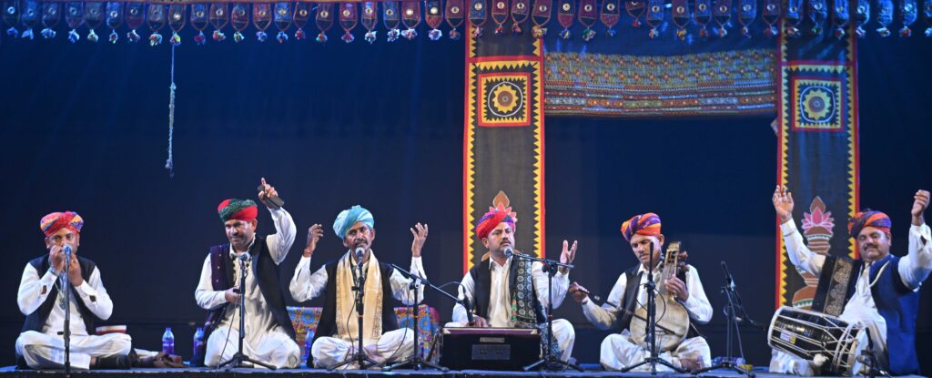 The day concluded with a vibrant folk music performance by Bhungar Khan and the Manganiyar group from Barmer, Rajasthan. A seventh-generation Manganiyar musician, Bhungar Khan is a recipient of the Ustad Bismillah Khan Yuva Puraskar (2016) and the Rajasthan Sangeet Natak Akademi State Award (2023). Having performed in over 45 countries, he continues to preserve the Manganiyar tradition through Dharohar, an institution he founded in 2007 to train young folk musicians.