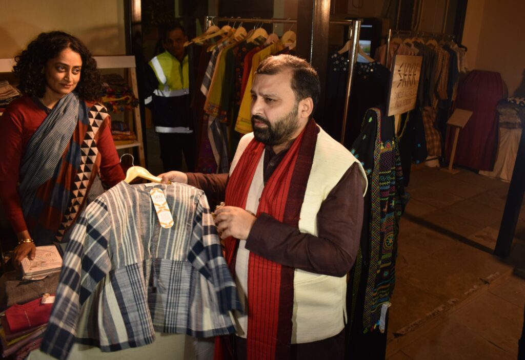 Navyug Khadi marks a significant step toward making Khadi more contemporary and future-ready. For the first time, under the guidance of a dedicated designer team, sarees, garments, yardages, accessories, and home décor products made by Khadi institutions from across the country have been showcased under one roof. The exhibition brings together diverse regional crafts including Ikat from Odisha, Eri silk from Assam, Tangaliya from Gujarat, Silk from Karnataka, Cotton from Bengal, and traditional weaves from Telangana and Bihar — embodying the Prime Minister’s vision of a “New Khadi for New India.” Khadi is thus presented as a modern, inclusive, and globally relevant textile heritage.