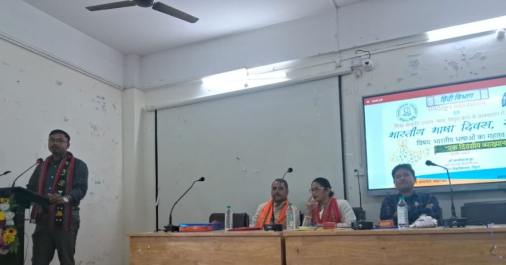 Agartala, Tripura, 19th of December 2025 : In an era of rapid globalization, the preservation of indigenous linguistic roots has become a national priority. To address this, Ramthakur College, Agartala, in collaboration with Shiksha Sanskriti Utthan Nyas, Tripura Prant, hosted a lecture titled “The Importance of Indian Languages” at the college auditorium today.