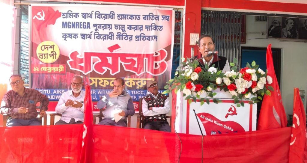 Dharmanagar Tripura, 25th of January, 2026 :A joint convention of Left parties was held in Dharmanagar on Sunday at 12 noon in support of the nationwide strike scheduled for February 12. The convention was organised to demand the repeal of anti-worker labour codes, resumption of MGNREGA, protection of farmers’ rights, and withdrawal of increased electricity bills.The convention was presided over by MLA Islam Uddin. Leaders from CPI(M), CPIML, CITU, United Trade Congress, farmers’, women’s, youth, pensioners’ and employees’ organisations addressed the gathering.
