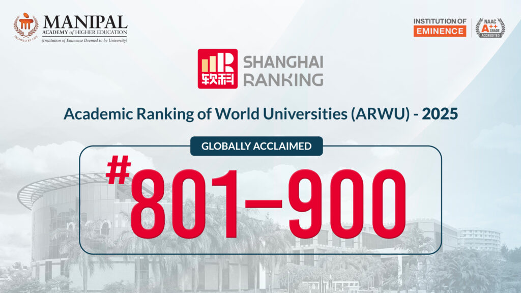 Manipal, 22nd of August, 2025 : Manipal Academy of Higher Education (MAHE), an Institution of Eminence Deemed-to-be-University, has advanced in its global academic standing through the prestigious 2025 Shanghai Ranking Academic Ranking of World Universities (ARWU), improving to the 801–900 band and reflecting steady progress. MAHE has positioned itself competitively among the top 1,000 global universities evaluated from over 2,500 institutions worldwide. The achievement is particularly significant as only 15 Indian universities are ranked in ARWU 2025, making MAHE one of the select few Indian institutions to earn this prestigious recognition based on objective research data from Web of Science (2020–2024) with no self-reported institutional data.