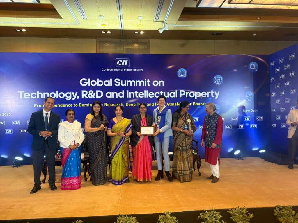 The award was received on behalf of the University by Dr. Chandrakala C. B., Joint Director, Manipal Institute of Technology (MIT), Manipal, and Dr. Prema K. V., Joint Director, MIT Bengaluru. The presentation was made by eminent dignitaries, including Dr. Ashish Mohan, Executive Director, CII; Dr. Vaishali Nigam Sinha, Chair, CII Women in STEM Initiatives and Co-founder of ReNew and Chairperson of Sustainability; Ms. Inge Buffolo, Director, European Union Intellectual Property Office (EUIPO); and Dr. Chandrika Kaushik, Distinguished Scientist and Director General of Production Coordination and Services Interaction, DRDO, Government of India.