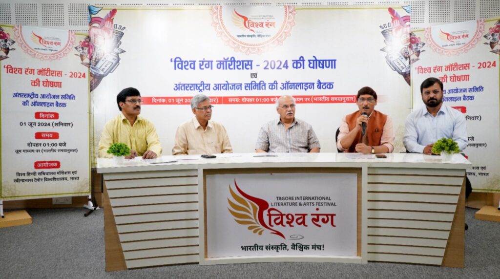 Announcing ‘Vishwarang- 2024’ of Vishwarang International Organizing Committee, Shri Santosh Choubey, Director, Vishwarang and Chancellor, Rabindranath Tagore University, informed that Vishwarang-2024 will be organized with the cooperation of Tagore International Hindi Centre (India), Tagore World Centre for Arts and Culture (India), Mahatma Gandhi Institute (Mauritius), Rabindranath Tagore Institute (Mauritius), Hindi Speaking Union (Mauritius), Hindi Pracharini Sabha (Mauritius), Maharishi Dayanand Saraswati Institute (Mauritius), Vishwarang Secretariat (India) and Vanmali Srijan Peeth (India) .