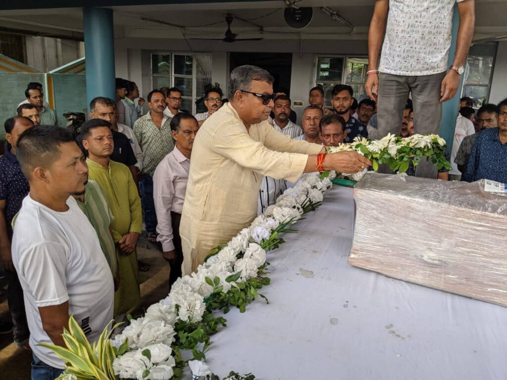 Hon’ble Food, Civil Supplies & Consumer Affairs, Transport and Tourism minister Sushanta Chowdhury, Hon’ble Agriculture & Farmers’ Welfare Minister Ratan Lal Nath, other ministers, MLAs, colleagues paid last respects to News Editor of Dainik Sambad Pradip Datta Bhowmik today.
