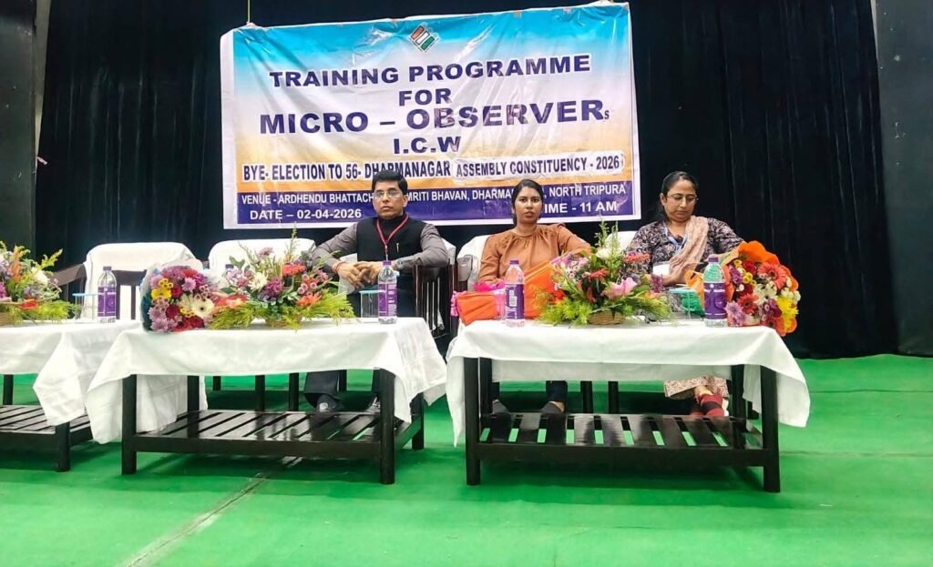 Dharmanagar, Tripura, 2nd of April, 2026 : In view of the upcoming by-election to the 56-Dharmanagar constituency, an important training programme for Micro Observers was held on Thursday, April 2, 2026. The session took place at the Ardhendu Bhattacharya Smriti Bhavan in Dharmanagar and was attended by the General Observer, the District Election Officer, and the Returning Officer of the 56-Dharmanagar Assembly Constituency.