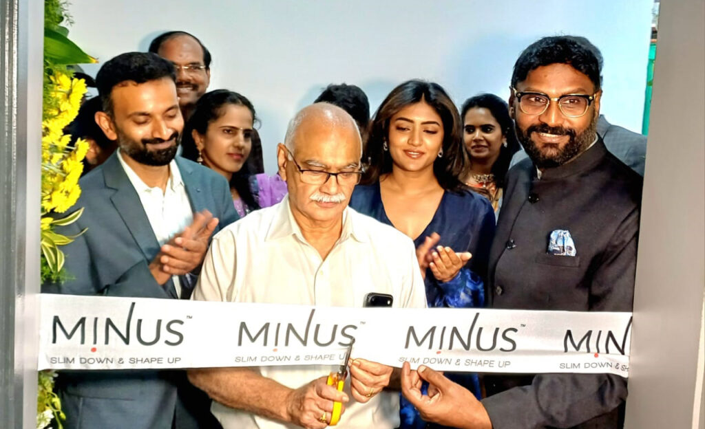 Chief Guests Dr. B. Bhaskar Rao, CMD & Sr. Consultant Cardiothoracic & Vascular Surgeon, KIMS Group of Hospitals; inaugurating the India’s 1st Next Gen MINUS Slimming Clinic at Gachibowli, today. Dr Shashank, Franchise Owner, MINUS Slimming Clinic, Gachibowli; Celebrity Guest Ms Eesha Rebba, Indian Actress; Guest of Honour Saran Vel J, Brand Founder & Managing Director, MINUS Slimming Clinic; Dr Venkatesh, Franchise Owner, MINUS Slimming Clinic, Gachibowli; were present on the occasion.