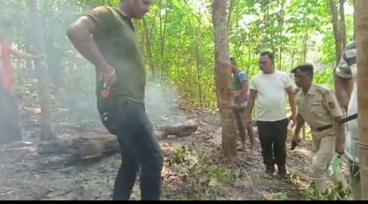 As per the report, the rubber plantation of Sunil Kalai of Twichen Para under 41 constituency in Gomati Tripura has been burnt at about 2 am last night. The Ampi BJP mandal president Shibnath Jamatia along with other BJP leaders including a team of police have visited the burnt garden and observed the status of the destroyed garden. He has interacted with the family members of the owner and gave them consolation. He has given them assurance that he would raised the issue to the government to provide them compensation ahead.