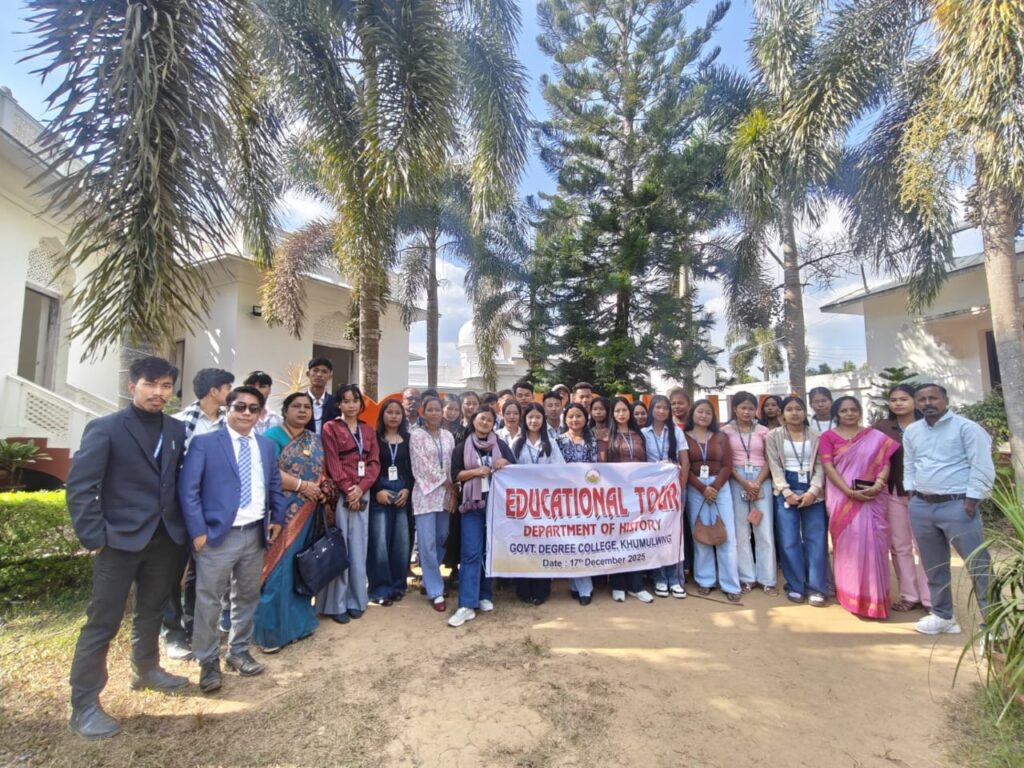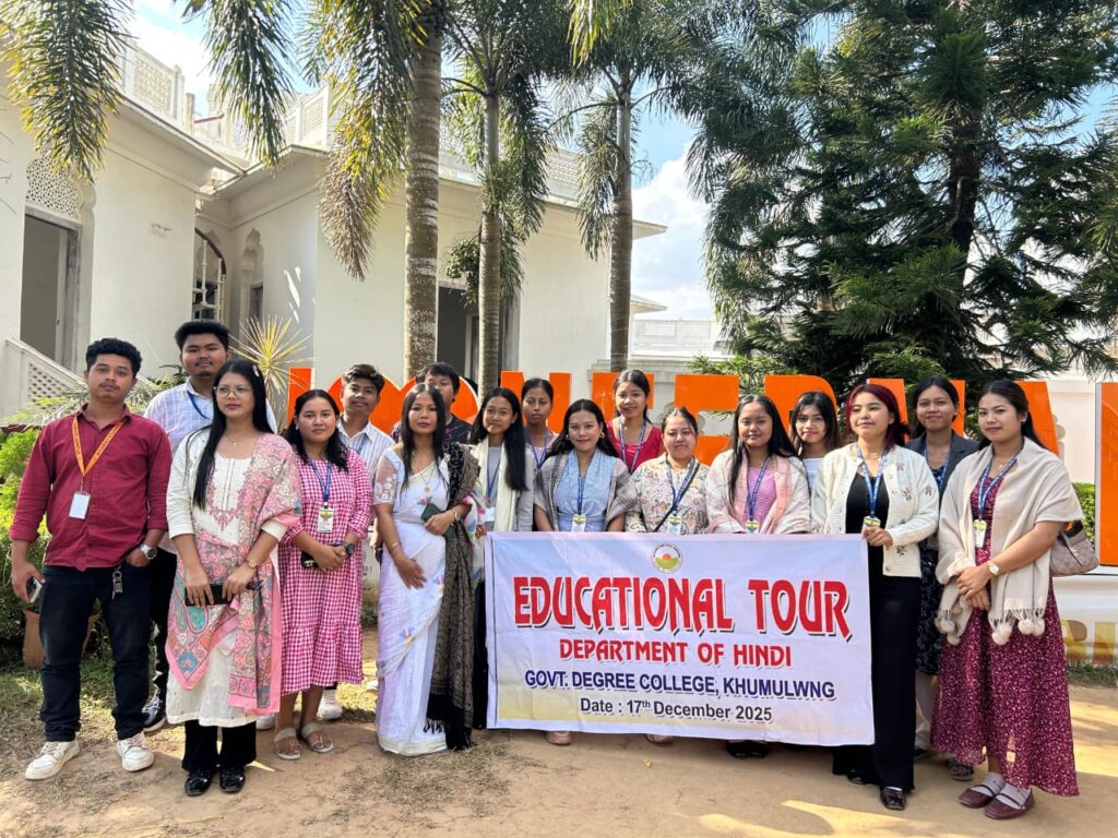 Agartala, Tripura, 17th of December 2025 : The Dept. of History and of Hindi of Government Degree College, Khumulwng have jointly organized a students practical knowledge promoting study tour to Nirmahal and Sepahijala Park with the objective of enhancing students’ conception over history, culture, and heritage. A total of 60 students from both departments have participated enthusiastically in this inspiring study tour. The tour was conducted with the aim of providing students with first-hand exposure to historical monuments, cultural heritage, and natural surroundings, thereby complementing classroom learning as well as to boost their experiential knowledge. Nirmahal, with its rich historical significance and architectural beauty, offered valuable insights into the region’s historical background, while Sepahijala Park helped students understand the environmental essentiality and relationship amidst nature, culture, and conservation. All faculty members from both the department of history and the Hindi have actively maintained the tour to enrich the genuine knowledge of the college student participants.