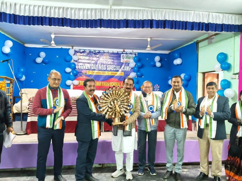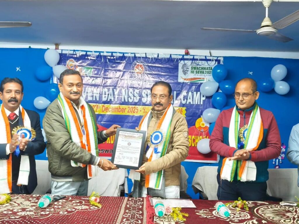 Closing ceremony of Seven days NSS residential camp was grace by Hon’ble MP Rajib Bhattacharjee on Friday (2nd January, 2026). Guided by the great ideal “Not Me, But You,” the NSS has been working tirelessly in educational institutions across the country to cultivate a spirit of service and social responsibility among students.