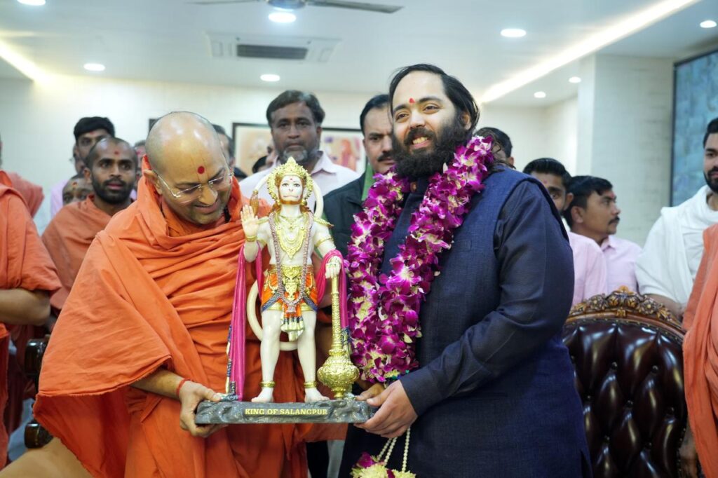 Mumbai, Maharashtra, 4th of January, 2026 : Chairman of Reliance Industries Mukesh Ambani on Sunday (4th January, 2026) paid a visit to the Shree Kashtabhanjan Dev Hanumanji Temple, Sarangpur along with his son Anant Ambani offering prayers at one of India’s most revered shrines.