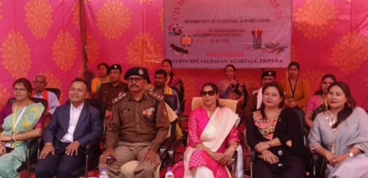 Agartala, Tripura, 23rd of February, 2026 : A series of community outreach and upliftment projects of 124 CRPF which was initiated with Free Medical Camp on 09th January 2026 at SSB Para, Baikhora, South Tripura was brought to a successful conclusion today at New Hindi Higher Secondary School, Khejur Bagan, Agartala by organizing Distribution of Free Stationery and Sports items today. It is worthwhile to mention here that 124 CRPF has conducted six such events under Civic Action Program (2025-26) at different locations within its area of operation.