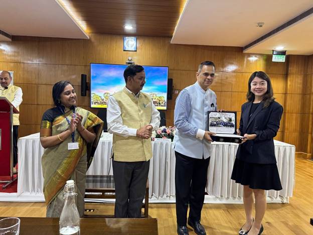 The valedictory session was chaired by Shri V Srinivas, Director General, NCGG & Secretary, Department of Administrative Reforms and Public Grievances (DARPG), Government of India. In his valedictory address, he emphasized on the importance of longstanding collaboration between India and Cambodia and discussed how the challenges faced by both the nations are common and developments in the area of science and technology, infrastructure development and the vision for development envisaged by both the nations is also similar. Highlighting the impact of transformative initiatives like Aadhaar, which have revolutionized subsidy transfer, he reflected on India’s vision for inclusive governance & prioritizing governance reforms, which focus on digital transformation for better service delivery so as to bring citizens closer to government. He outlined that the goal is to create digitally empowered citizens and technologically transformed institutions and consequently the nation. He also encouraged the officers to try and replicate the best practices learnt here especially for increasing infrastructure growth, building digital platforms like PM Gati Shakti for which both nations are committed to help each other through bilateral cooperation.